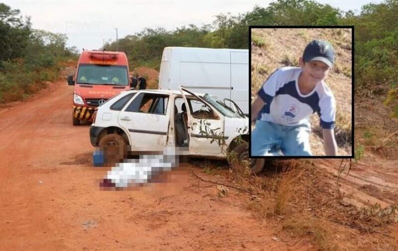 Aylon Vitor Santos de Almeida, 13, morreu após um acidente de trânsito, na zona rural de Nobres (146 km ao médio-norte de Cuiabá), na tarde de terça-feira (4). Ele estava no carro da família, que perdeu uma roda, bateu em uma estrutura de concreto e capotou. O menor morreu no local.