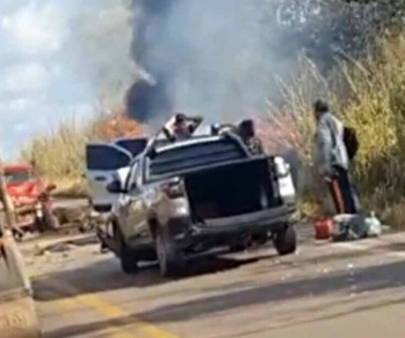 Cinco veículos se envolveram em um acidente na tarde desta segunda-feira (06), na BR-163 em Itaúba, próximo ao Castanhal. Um dos veículos saiu da pista e pegou fogo, sendo que as chamas se espalharam e atingiram o matagal às margens da pista.