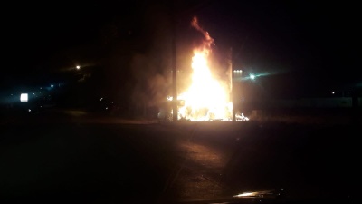Após a colisão o veículo começou a pegar fogo e populares que passaram pelo local retiraram as vitimas que estavam no veículo.