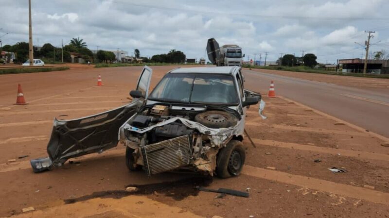 O acidente envolvendo o Fiat Uno e uma carreta (marca e modelo não informados), foi registrado, na tarde deste domingo (02), no trecho de entroncamento da rodovia federal com a MT-220, na região do Camping Club. Não houve feridos.
