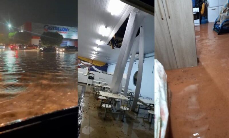 Diversos vídeos dos alagamentos têm sido compartilhados nas redes sociais. Entre os estragos registrados está o forro do Restaurante da Universidade Federal de Mato Grosso que cedeu e ainda um ônibus que ficou com as rodas presas na Avenida Palmiro Paes de Barros, após o asfalto ceder.