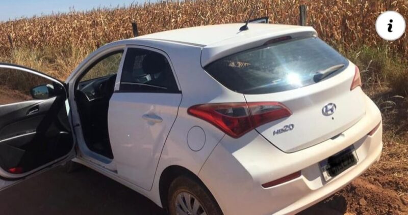 O veículo Hyundai HB-20, branco, placa de Várzea Grande foi levado pelo criminoso, e depois abandonado na Estrada Cláudia com as portas abertas.