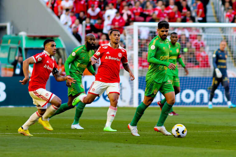 O jogo – O Internacional por detalhe não abriu o marcador no primeiro tempo. Aos cinco minutos, o Colorado teve boa chance com Wanderson. O camisa 11 recebeu de Maurício e mandou na defesa. O Inter seguiu em cima do Cuiabá e Alemão mandou na trave duas vezes, mas o árbitro assinalou impedimento.