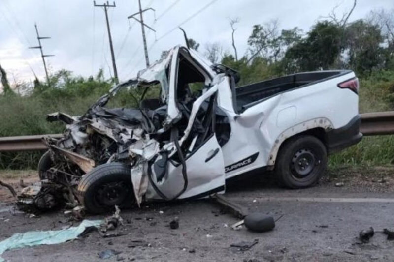 Duas pessoas morreram em um grave acidente registrado nas primeiras horas desta quinta-feira (12), na Rodovia dos Imigrantes, em Cuiabá. A colisão envolveu uma picape Strada e uma carreta. As vítimas ficaram presas às ferragens e morreram ainda no local.