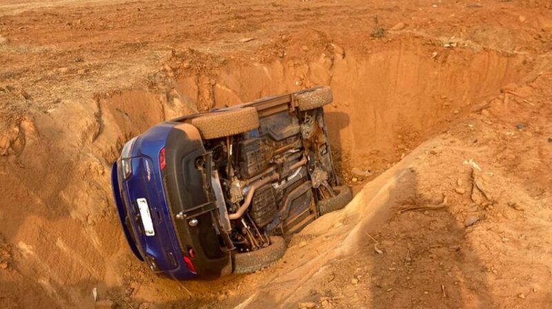 A versão investigada é que o condutor perdeu o controle e o veículo, placas de Taboão da Serra (SP), caiu dentro da vala de escoamento de água.