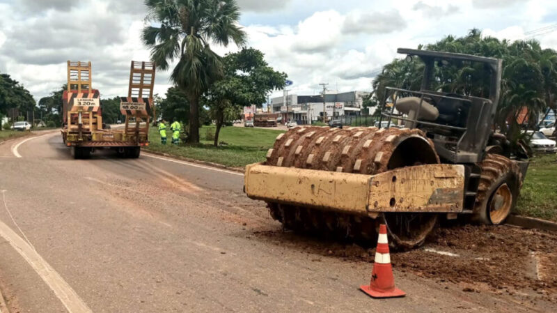 O acidente envolvendo um caminhão prancha e um rolo compactador foi, no final da manhã, na BR-163 em frente ao entroncamento com rua Colonizador Ênio Pipino e avenida Tarumãs. O condutor do caminhão foi socorrido por terceiros e levado até a unidade de saúde.