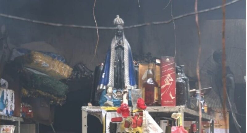 Uma imagem de Nossa Senhora Aparecida ficou intacta após um incêndio de grandes proporções atingir uma mercearia e conveniência em Sinop.