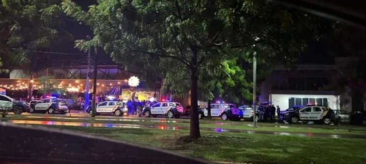 Segundo as informações fornecidas pela Polícia Militar em registro, a guarnição durante patrulhamento foi acionada, informando sobre disparos de arma de fogo em um estabelecimento comercial. A Polícia se deslocou até o local do fato, onde foram informados por um segurança do local, que um homem armado que efetuou os disparos, estava no interior do estabelecimento com uma camiseta xadrez.