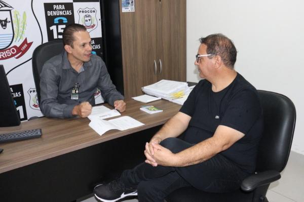 Nesta segunda-feira (23), o vereador Leandro Damiani se reuniu com o coordenador do Procon de Sorriso, Robson de Moura, para solicitar a fiscalização no cumprimento da Lei Municipal n.º 3.052, de 19 de agosto de 2020, feita após indicação do parlamentar, que estabelece o atendimento preferencial a pessoas portadoras de fibromialgia em órgãos públicos e privados do Município, além do direito à vaga preferencial em estacionamentos.