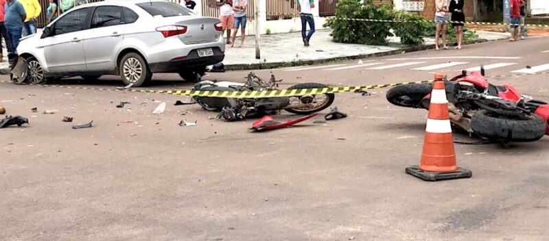 O sargento Ferreira, da Polícia Militar, informou que “a dinâmica dos fatos aqui, segundo o condutor do Siena que é pai de um dos envolvidos, que é o da CB1000, ele relata que estava subindo sentido BR-163 e o filho coincidentemente estaria descendo com a moto CBR 1000, sem nenhum saber do outro”. “Na hora que foi cruzar pai e filho (na esquina), veio a Bros e se chocou com a CBR-1000 e jogou ele em cima do carro”, detalhou.